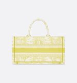 Part of the Dioriviera capsule, Maria Grazia Chiuri’s newest Dior Book Tote is updated with a new East-West format. The style is entirely embroidered with the Toile de Jouy Soleil motif in lemon yellow, offering a new take on the iconic House pattern with suns and crescent moons layered into a floral arrangement representing the four seasons. Designed to keep daily items organized, the practical tote is a prime example of Dior’s savoir-faire and can be carried by hand or worn over the shoulder.