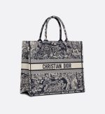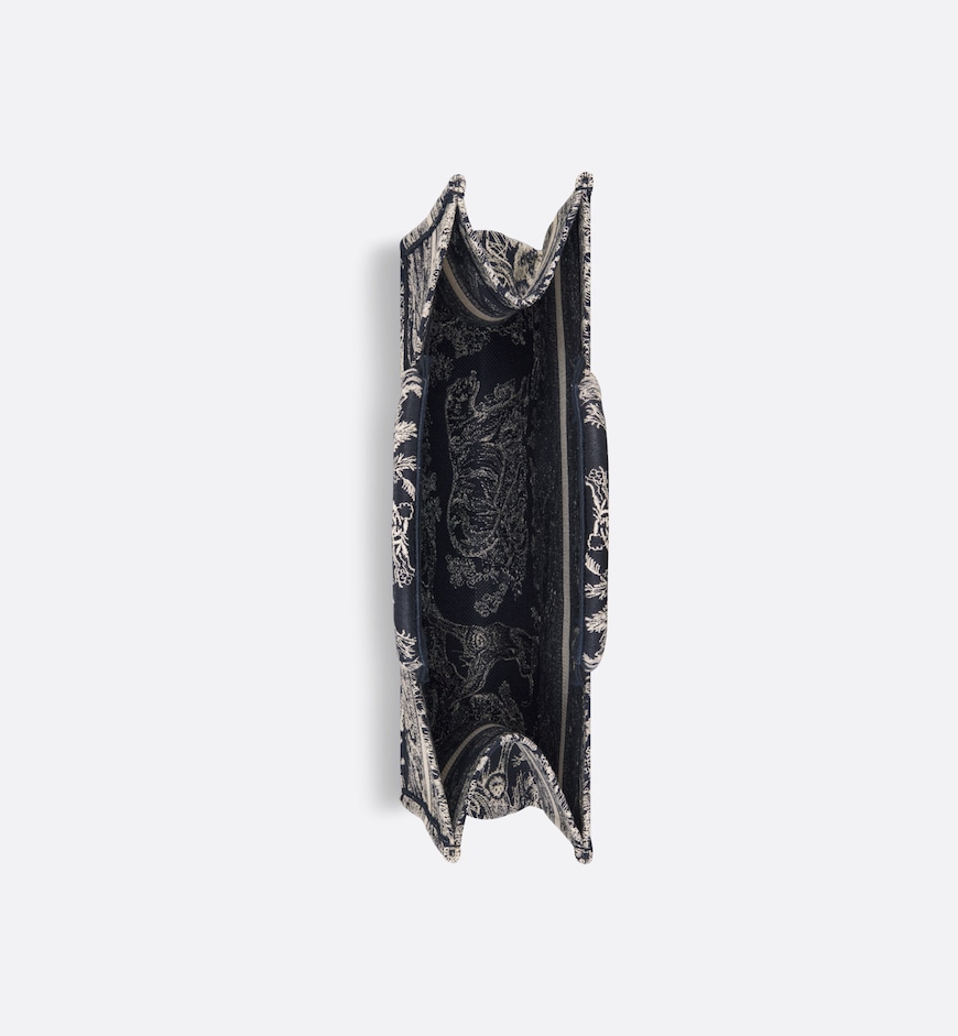 Introduced by Maria Grazia Chiuri, Creative Director of Christian Dior, the Dior Book Tote has become a staple of the Dior aesthetic. Designed to hold all the daily essentials, the style is fully embroidered with a blue and ecru Toile de Jouy Reverse motif, a variation of the House’s hallmark pattern with a play on reversed colors. Adorned with the Christian Dior Paris signature on the front, the large tote exemplifies the House’s signature savoir-faire and may be carried by hand or worn over the shoulder.