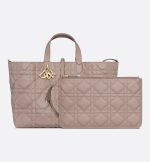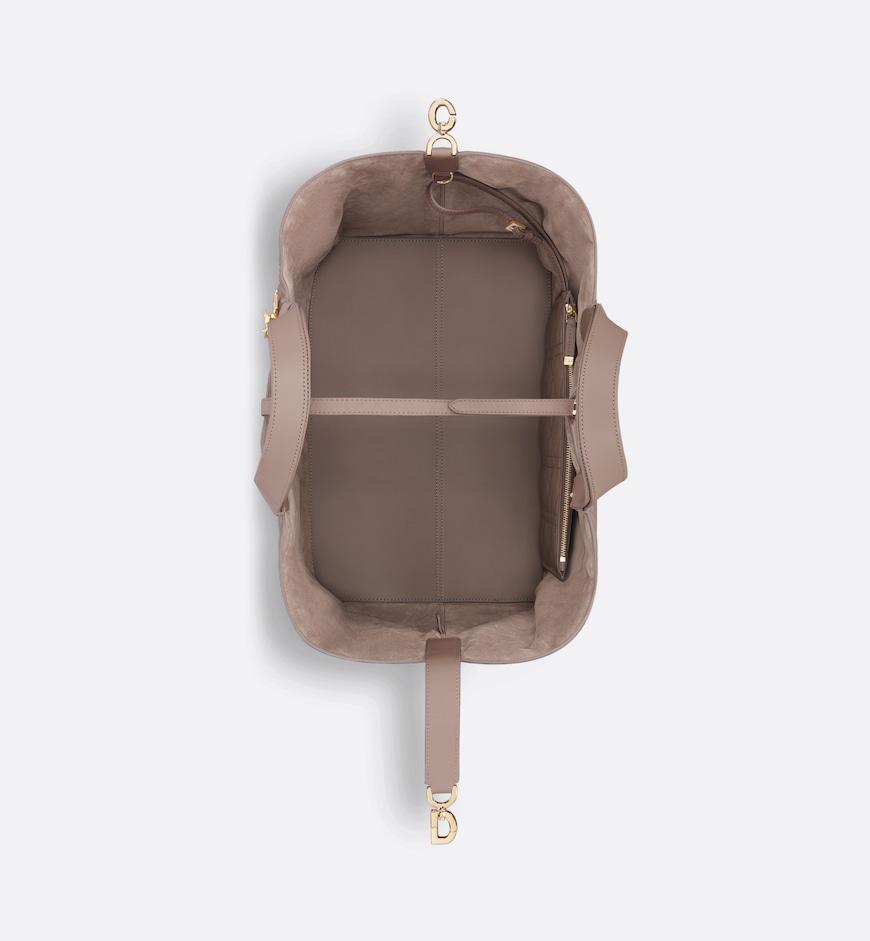 The Dior Toujours bag is distinguished by a casual and practical design. Crafted in warm taupe calfskin with Macrocannage topstitching, it showcases a spacious interior compartment with a matching pouch to organize the essentials. Its thin leather strap closure keeps items secure while the D of the CD Lock clasp twists to adjust the sides and enhance the bag’s silhouette. The leather handles can be adjusted using the small notches in order to be able to carry the large bag by hand or wear it over the shoulder.