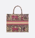 Introduced by Maria Grazia Chiuri, Creative Director of Christian Dior, the Dior Book Tote has become a staple of the Dior aesthetic and is part of the Dioriviera capsule. Designed to hold all the daily essentials, it is crafted in raffia embroidered with the Toile de Jouy Sauvage motif in candy pink. Enhanced by a contrasting Christian Dior Paris signature on the front, the large tote exemplifies the House’s savoir-faire and may be carried by hand.