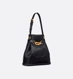 New for Fall 2023, the C’est Dior bag is an elegant and timeless creation. Crafted in black calfskin, it is distinguished by the embossed CD signature on the front, testifying to the House’s savoir-faire. Thanks to its CD Lock closure with a twisting letter D, the bucket bag can keep the essentials secure. A top handle and adjustable, removable chain strap with a leather insert allow the medium bag to be comfortably carried by hand or worn over the shoulder.