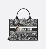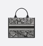 Maria Grazia Chiuri’s hallmark Dior Book Tote is presented in an elegant new variation. The refined style showcases the white and black Plan de Paris embroidery and black calfskin. The motif is inspired by House archives and structured around Dior’s historic Avenue Montaigne address. Designed to keep all the daily essentials organized, the interior is equipped with a zip pocket and slip pockets. Featuring an adjustable and removable shoulder strap, the practical medium tote exemplifies Dior’s savoir-faire and can be carried by hand or worn over the shoulder.