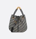 New for Fall 2024, the Dior Nolita bag redefines House codes of modern elegance with a refined and contemporary silhouette. The blue Dior Oblique jacquard is complemented by structured top handles embellished with antique gold-finish metal, as well as sliding D.I.O.R. charms which lend a touch of movement. The drawstring closure reveals a practical interior with a slip pocket, while the adjustable and removable leather strap allows the medium bag to be carried by hand, worn over the shoulder or crossbody.