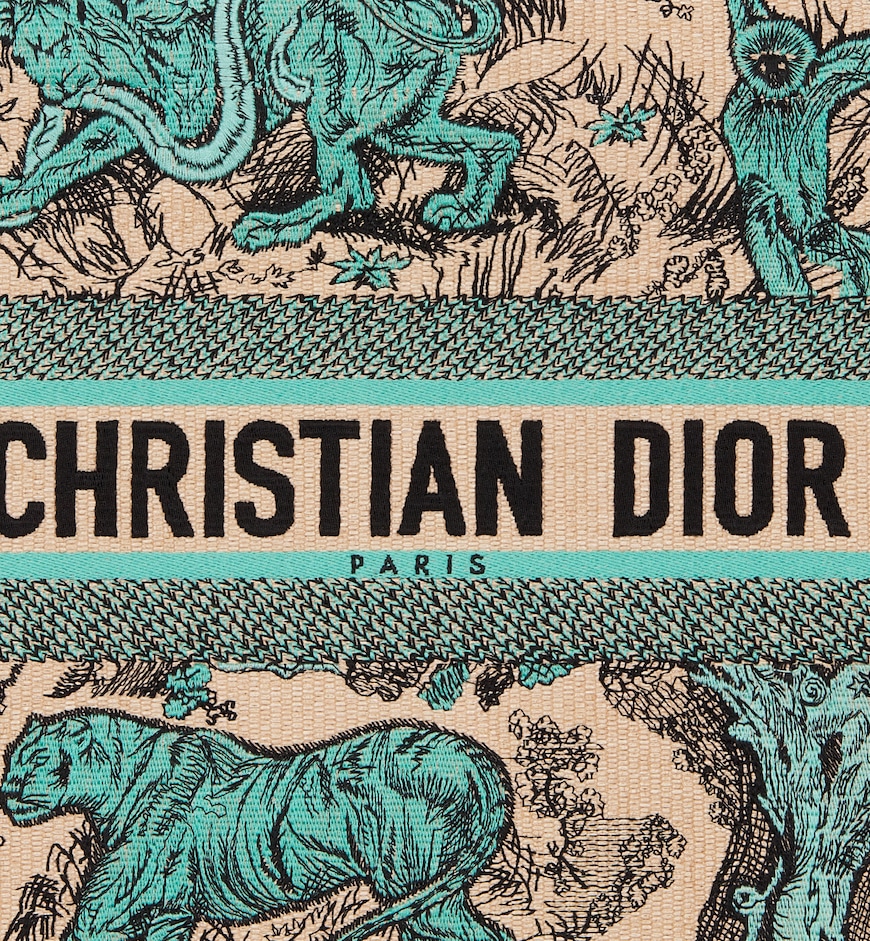 Introduced by Maria Grazia Chiuri, Creative Director of Christian Dior, the Dior Book Tote has become a staple of the Dior aesthetic and is part of the Dioriviera capsule. Designed to hold all the daily essentials, the raffia style is embroidered with the Toile de Jouy Sauvage motif in aquamarina. Enhanced by a Christian Dior Paris signature on the front, the medium tote exemplifies the House’s savoir-faire and may be carried by hand or worn over the shoulder.
