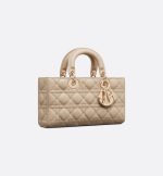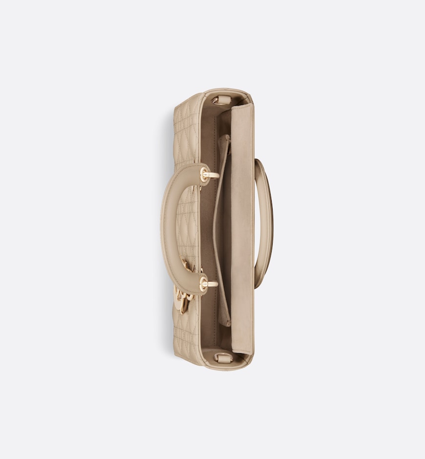 The Lady D-Joy bag captures the House’s vision of elegance and beauty. Refined and sleek, this timeless style showcases the iconic streamlined aesthetic of the Lady Dior line. Crafted in sand-colored lambskin with Cannage stitching, it is enhanced by pale gold-finish metal D.I.O.R. charms embellishing its silhouette. Featuring one removable chain shoulder strap and another adjustable and removable