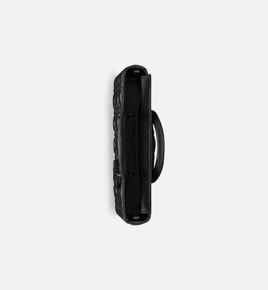 The LadyD-Joy bag captures the House’s vision of elegance and beauty by showcasing the iconic streamlined aesthetic of the Lady Dior line. Constructed in black crinkled calfskin with Cannage stitching, its quilted texture is immediately recognizable. Ultra-matte metal D.I.O.R. charms add a modern touch. Featuring one removable chain strap and another adjustable and removable leather strap, the medium LadyD-Joy bag can be carried by hand, worn over the shoulder or crossbody as a daily companion.