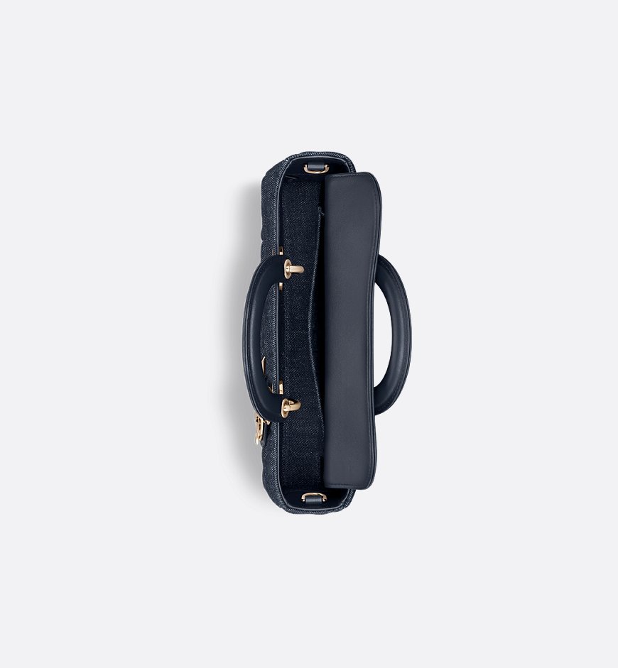 The Lady D-Joy bag captures the House’s vision of elegance and beauty by showcasing the iconic streamlined aesthetic of the Lady Dior line. Crafted in blue denim, the style features the Graphic Cannage motif, offering a modern 3D version of the House icon. Pale gold-finish metal D.I.O.R. charms embellish and illuminate its silhouette. Equipped with one removable chain strap and another adjustable and detachable leather strap, the medium Lady D-Joy bag can be carried by hand, worn over the shoulder or crossbody as a daily companion.