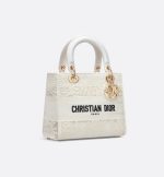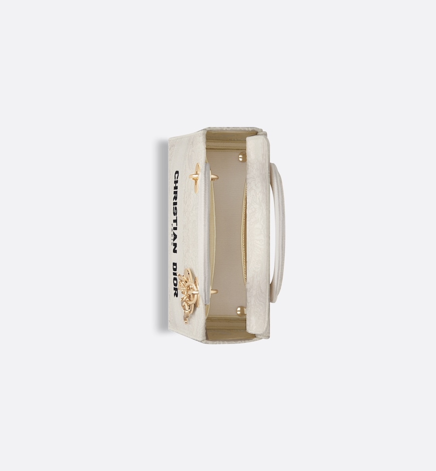 The Lady D-Lite bag captures the House’s vision of classic elegance and modernity. Constructed in white Macramé embroidery, it offers a new take on the iconic House motif with this season’s signature Toile de Jouy Soleil pattern, layering suns and crescent moons into a floral design representing the four seasons. The pale gold-finish metal D.I.O.R. charms embellish and illuminate the silhouette. Featuring a wide, removable embroidered shoulder strap, the medium Lady D-Lite bag can be carried by hand or worn crossbody.