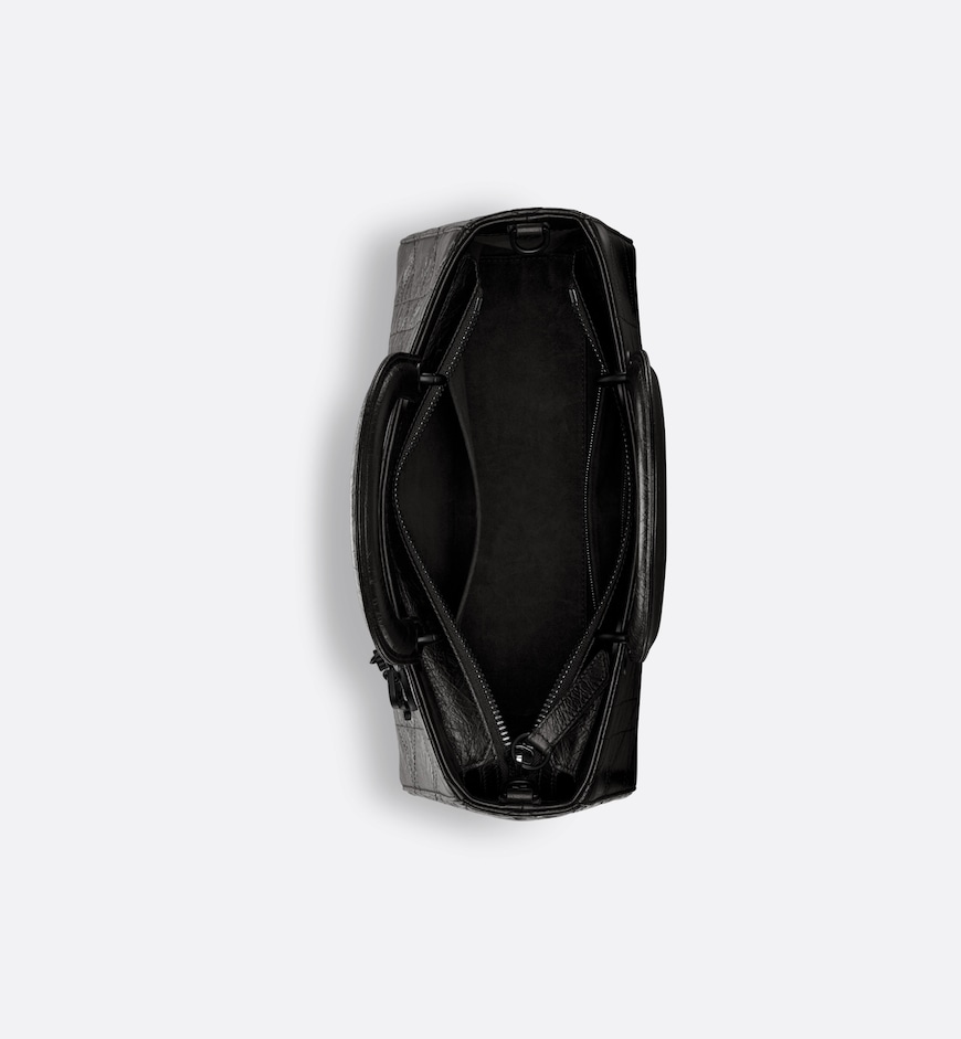 New for the season and appearing in the Spring-Summer 2024 Fashion Show, the Lady D-Sire My ABCDior bag draws inspiration from the iconic elegance of the Lady Dior design. Reimagined with a casual style for an urban look, the black crinkled calfskin is accented by Macrocannage topstitching, while tonal ultra-matte metal D.I.O.R. charms lend a modern touch. Showcasing a shoulder strap that can be personalized by adding symbolic badges, the unique medium bag can be carried by hand or worn crossbody.