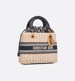 The Lady Dior bag epitomizes Dior’s vision of elegance and beauty. The timeless creation is traditionally crafted in natural handwoven wicker and exemplifies Dior’s savoir-faire. The bag features a blue Dior Oblique jacquard interior pouch with a drawstring as well as a Christian Dior Paris embroidered band on the front. Antique gold-finish metal D.I.O.R. charms offer elegant appeal. The medium Lady Dior bag, with its wide, removable leather shoulder strap, can be carried by hand or worn crossbody.