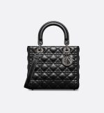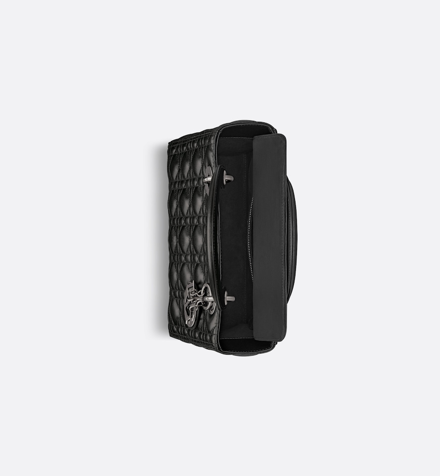 The Lady Dior bag epitomizes the House’s codes. Sleek and refined, the timeless style is crafted in black lambskin with Cannage stitching, its quilted texture instantly stands out and it is completed by a tonal suede calfskin interior, while the ruthenium-finish D.I.O.R. charms further embellish the modern and bold silhouette. The medium Lady Dior bag features a thin, removable leather shoulder strap and can be carried