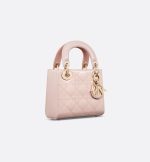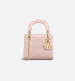 The Lady Dior bag epitomizes the House’s vision of elegance and beauty. Sleek and refined, the timeless style is crafted in powder pink patent calfskin with Cannage stitching, creating the instantly recognizable quilted texture, while the pale gold-finish metal D.I.O.R. charms further embellish its silhouette. Featuring a removable chain strap, the miniature Lady Dior bag can be carried by hand or crossbody as an