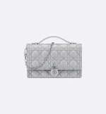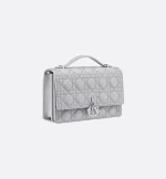 The My Dior Top Handle bag presents an elegant and functional design. The bag is crafted in gray lambskin with Cannage stitching and features a flap enhanced by D.I.O.R. charms as well as two compartments and a zip pocket to accommodate all the essentials, day or night. The signature Top Handle is completed by a removable chain strap with a leather insert, allowing it to be comfortably carried by hand, worn over the shoulder or crossbody.