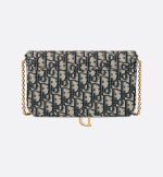The Saddle pouch with chain is a modern and practical creation with smooth and harmonious lines. Crafted in blue Dior Oblique jacquard, it features an asymmetric flap and an antique gold-finish metal D stirrup. The spacious interior will accommodate any essentials, while the chain allows it to be worn over the shoulder or crossbody. The pouch can be paired with other Saddle creations.