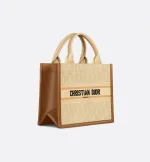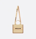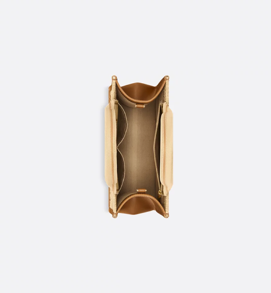 Maria Grazia Chiuri’s hallmark Dior Book Tote is presented in an elegant new variation. The refined beige raffia style is embroidered with the Dior Oblique motif and embellished with camel calfskin detailing. Designed to keep all the daily essentials organized, the cashmere leather interior is equipped with a zip pocket and slip pockets. Featuring an adjustable and removable strap and elevated by the Christian Dior Paris signature on the front, the practical small tote exemplifies Dior’s savoir-faire and can be carried by hand or worn over the shoulder.