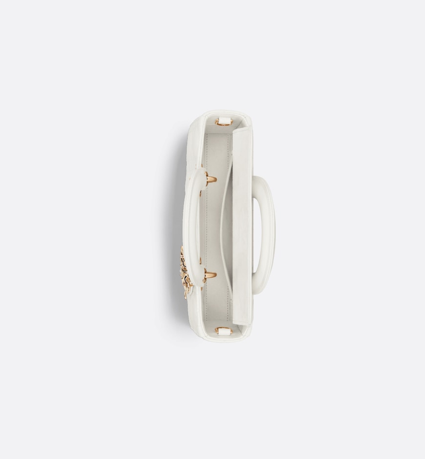 The Lady D-Joy bag captures the House’s vision of elegance and beauty by showcasing the iconic streamlined aesthetic of the Lady Dior line. Crafted in latte lambskin with Cannage stitching, the refined and timeless style is enhanced by pale gold-finish metal D.I.O.R. charms elegantly embellishing its silhouette. Featuring one removable chain strap and another adjustable and removable leather strap, the small