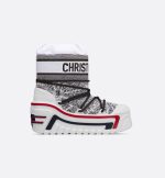 The apr??s-ski boot, created for the DiorAlps capsule, is distinguished by its design. The white and black Plan de Paris shiny nylon upper is inspired by House archives and structured around Avenue Montaigne. Completed by cross lacing for an optimal fit, it showcases the Christian Dior signature on the upper as well as the supple and lightweight white three-tone sole, further embellished with a hallmark star. The technical ankle boot, with its low silhouette, may be worn in either the city or the mountains, and may be coordinated with other DiorAlps creations.