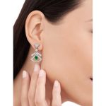 The DIVAS’DREAM earrings embody Italian elegance and charm, unleashing the power of women with a mysterious and unforgettable temperament. The delicate fan-shaped pattern full of feminine charm draws inspiration from the colorful mosaic decorations of the Baths of Caracall in Rome, highlighting the historical roots between Bvlgari and the “Eternal City” Rome with the essence of Italian elegance and charm. The exquisite and lightweight hollow design reinterprets the classic shape of the series, interpreting the charm between reality and illusion. Divas’ Dream series white 18K gold hollow earrings, inlaid with pear-shaped emeralds, round brilliant-cut diamonds, and decorated with pavé diamonds