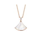 Inspired by feminine elegance and the allure of the Eternal City, the Divas’ Dream necklace pays tribute to the most fascinating women with a unique Roman spirit. Feminine and refined, this necklace captures the beauty of the marble of the Baths of Caracalla and the curves of the fan-shaped mosaics, the true essence of Italian beauty. Divas’ Dream necklace in 18K rose gold, mother-of-pearl and pavé diamonds.