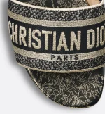 The timeless, hallmark Dway slide features the black and gold-tone Dior Chardons motif by Pietro Ruffo, showcasing Scotland’s emblematic flower symbolizing protection, resilience and liberty. The upper is punctuated by gold-tone metallic thread and embroidered with the Christian Dior Paris signature for an instantly recognizable touch. Its streamlined silhouette makes it easy to slip on to complete a relaxed look that will pair well with other Dior Chardons creations from the collection.