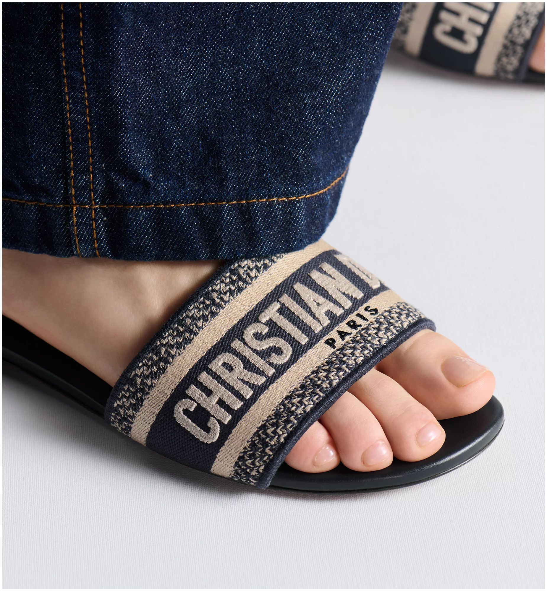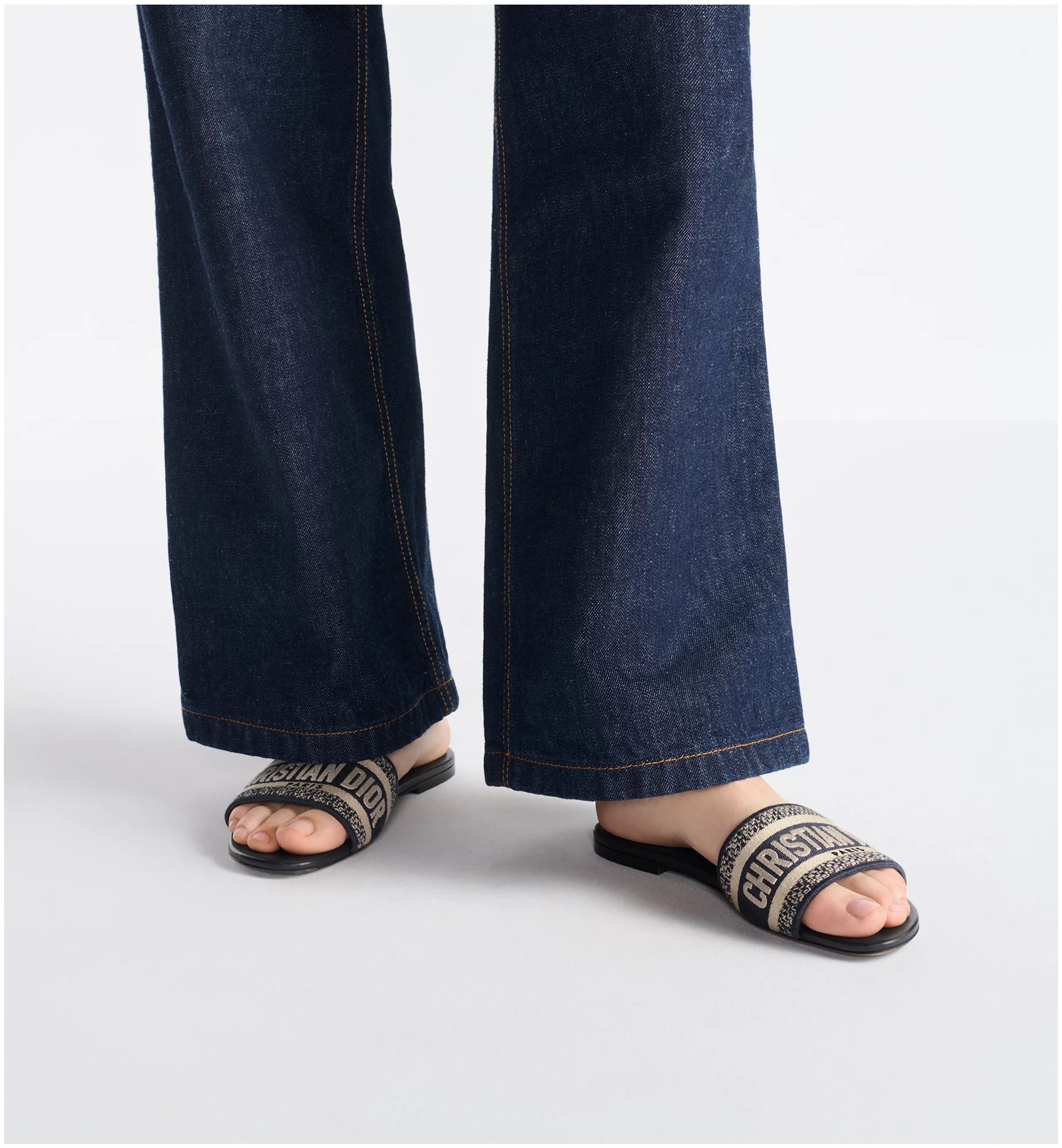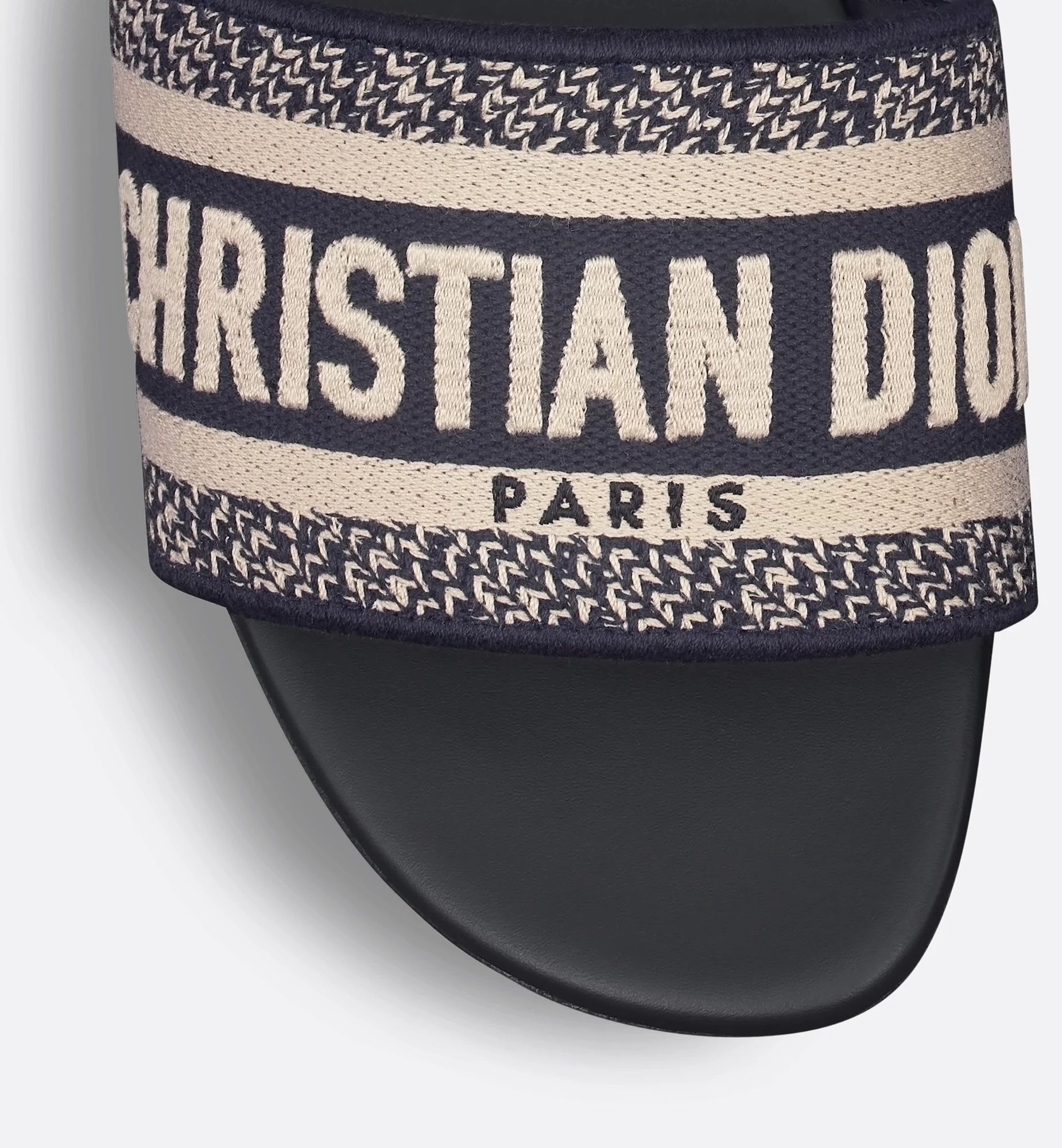 The Dway slide has a timeless and emblematic silhouette. The slide’s upper features a deep blue embroidered Christian Dior Paris signature for an unmistakable touch. The streamlined design slips on easily and offers effortless style.