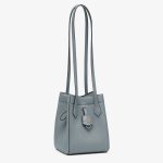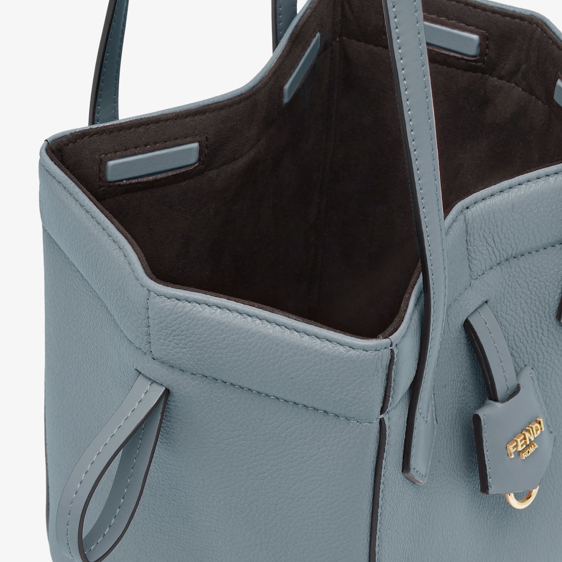 Mini Origami bag made of blue full-grain leather. The style recalls the dual nature and creativity of Fendi with an innovative design that can be transformed:the ingenious closure with eight magnets means the bag can be folded, origami-style, transforming it from a bucket bag – when the magnets come together in the middle with a magic clasp – into a shopper by gently pulling the short shoulder straps on each side.