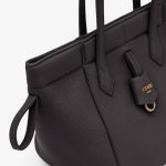 Mini Origami bag made of black full-grain leather. The style recalls the dual nature and creativity of Fendi with an innovative design that can be transformed:the ingenious closure with eight magnets means the bag can be folded, origami-style, transforming it from a bucket bag – when the magnets come together in the middle with a magic clasp – into a shopper by gently pulling the short shoulder straps on each side.