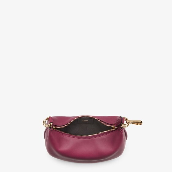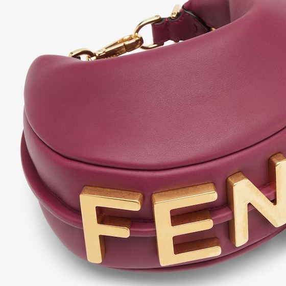 Mini hobo bag, part of the collection curated with designer Stefano Pilati, made of soft burgundy leather, embellished with vintage gold metal FENDI lettering.