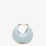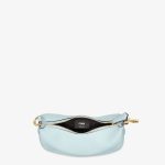 Mini hobo bag made of soft, light blue leather, embellished with vintage gold metal FENDI lettering.