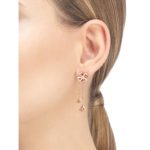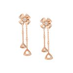 Blooming amid the majestic monuments of the Eternal City, the Fiorever collection draws its inspiration from the enchanting four-petal flower cherished by the Romans as a symbol of happiness and joy. Made up of two rich words:Fiore (Italian for flower) and forever (English for eternity), Fiorever celebrates the Romans’ love of life with a passionate, bold design. Precious, classic floral motifs are presented in a corolla of fine diamonds, radiating a timeless brilliance. Fiorever pendant earrings in 18K rose gold, set with 2 round brilliant-cut diamonds and adorned with pavé diamonds.