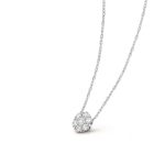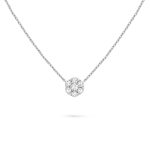 Fleurette pendant, rhodium plated 18K white gold, round diamonds; diamond quality DEF, IF to VVS.The pendant is attached to the necklace’s chain