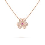 Frivole pendant, mini model, 18K rose gold, round diamonds; diamond quality DEF, IF to VVS.The pendant is attached to the necklace’s chain