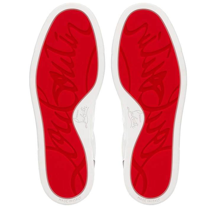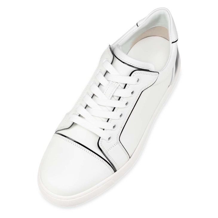 The Fun Vieira low-top sneaker sits on a white rubber sole with contrasting calf leather lining. With its sporty lines, it combines Bianco white calf leather, nappa leather, and black patent calf leather. This model showcases Maison Christian Louboutin’s exemplary creativity and features the signature on the back and delicate topstitching.
