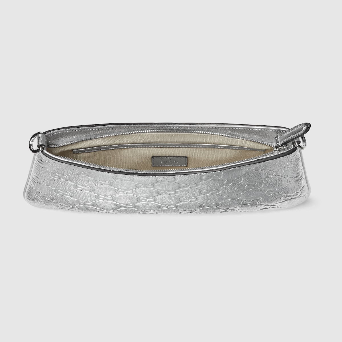Silver metallic GG grainy leather