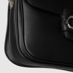 The Gucci Horsebit 1955 Soft continues its equestrian-inspired design with the double ring and bar hardware, blending light gold-toned details and soft leather on this small shoulder bag.