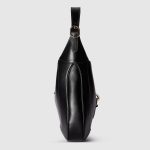 In the Spring Summer 2024 collection, the Gucci Jackie shoulder bag features premium fine leather which highlights the craftsmanship, crescent shape, and sleek silhouette of the House’s iconic shoulder bag. Light gold-toned hook closure, leather trim, and an additional green and red Web strap gives this Gucci Jackie medium shoulder bag in black leather further styling options.