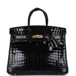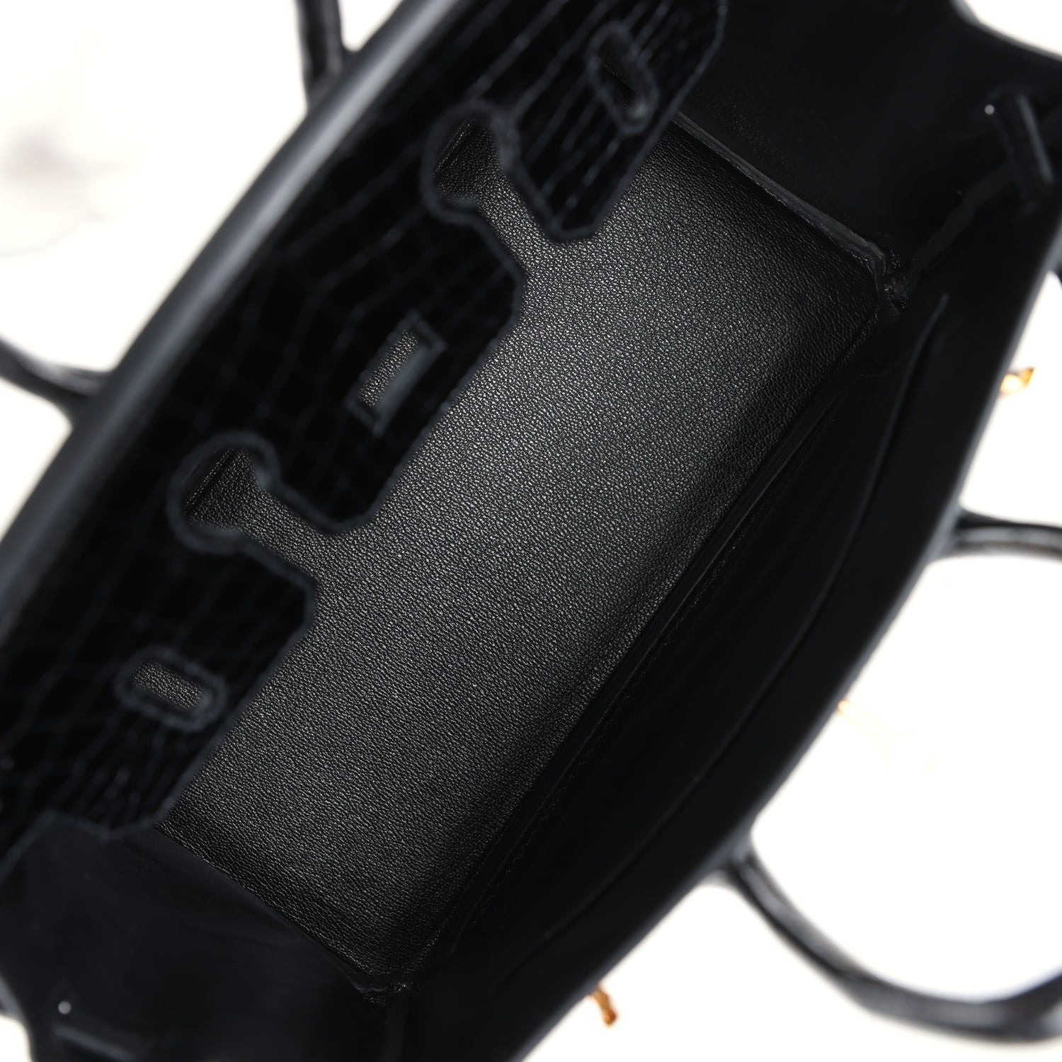 Hermes Birkin 25 Black Shiny Niloticus Crocodile Gold Hardware