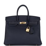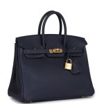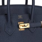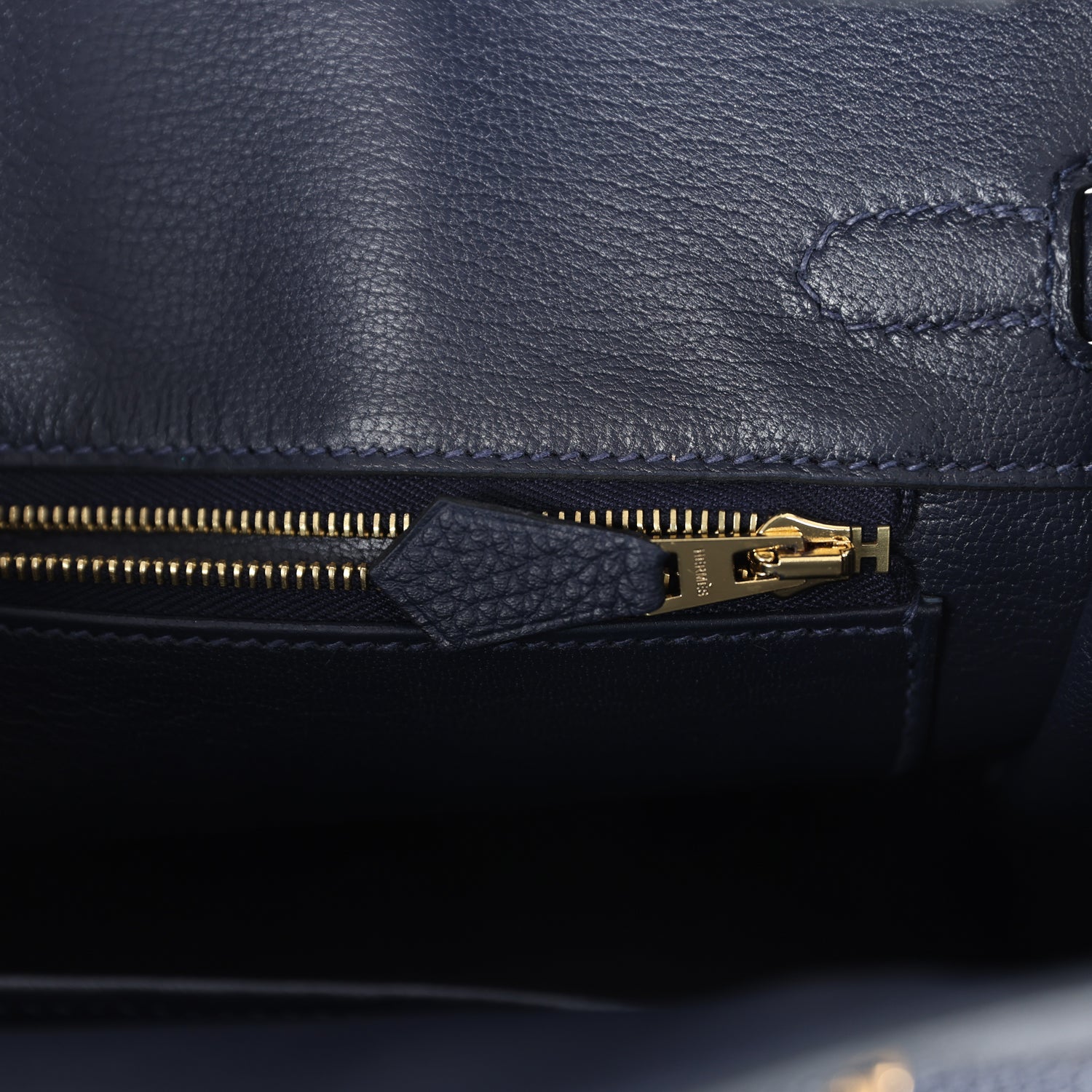 This Birkin is in Bleu Nuit togo leather with gold hardware and has tonal stitching, afront flap, two straps withcentertoggle closure, clochette with lock and two keys, and double rolled handles.