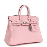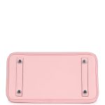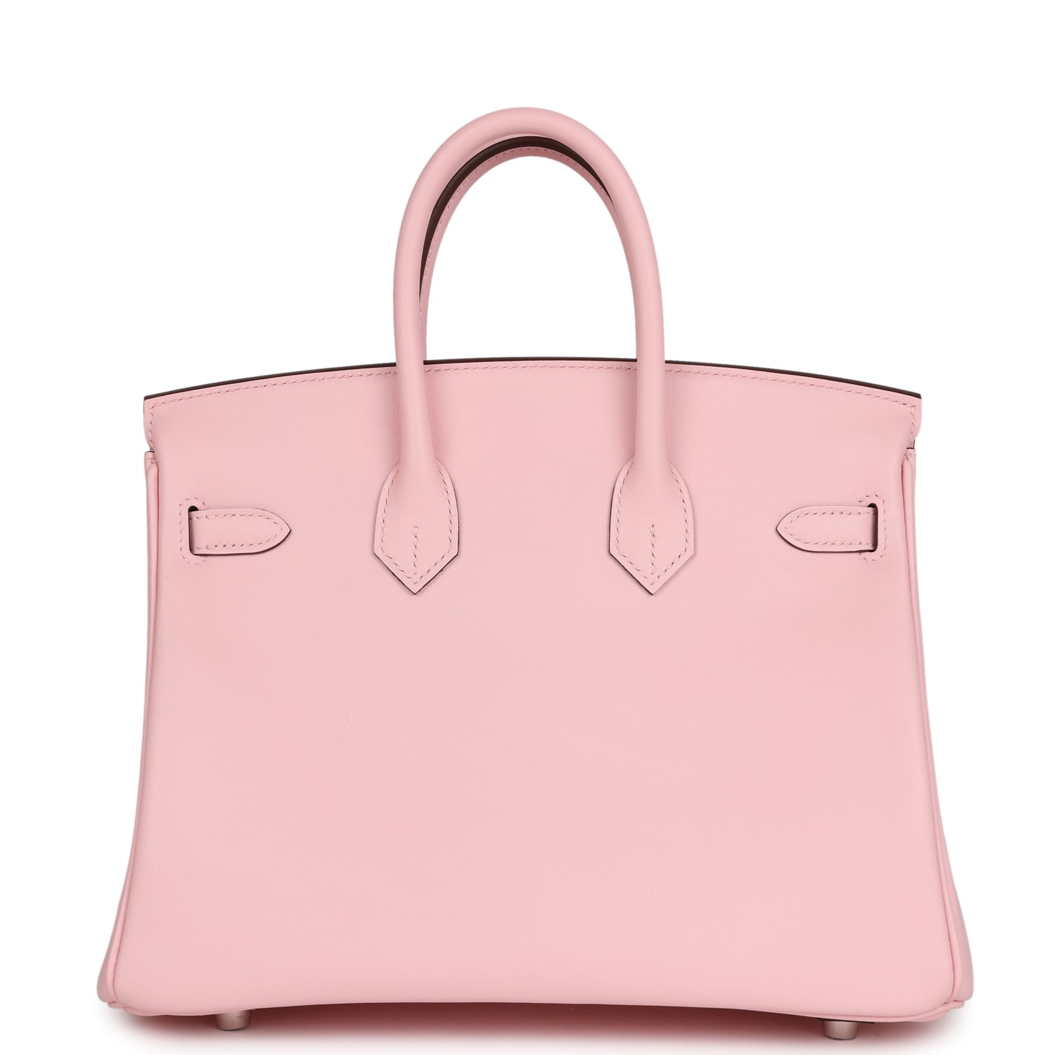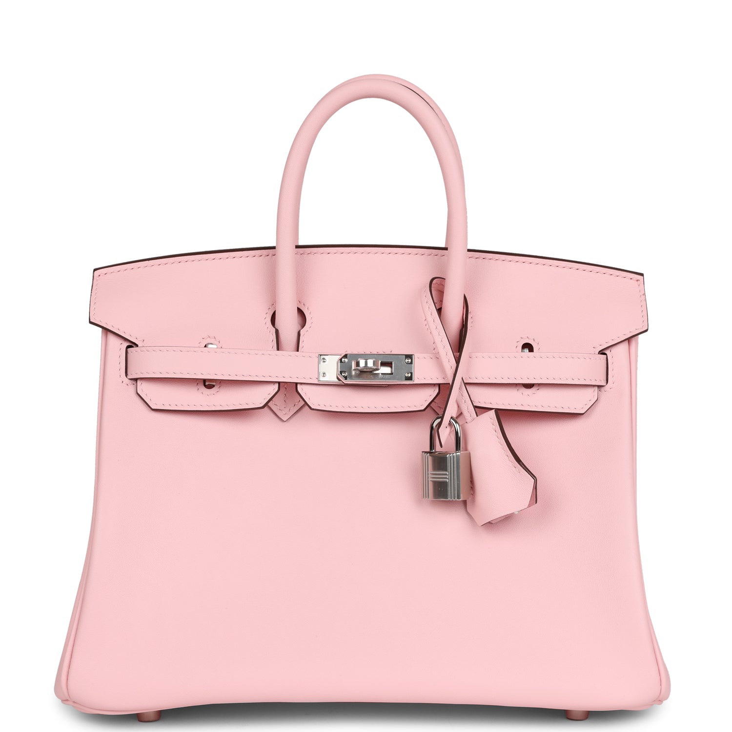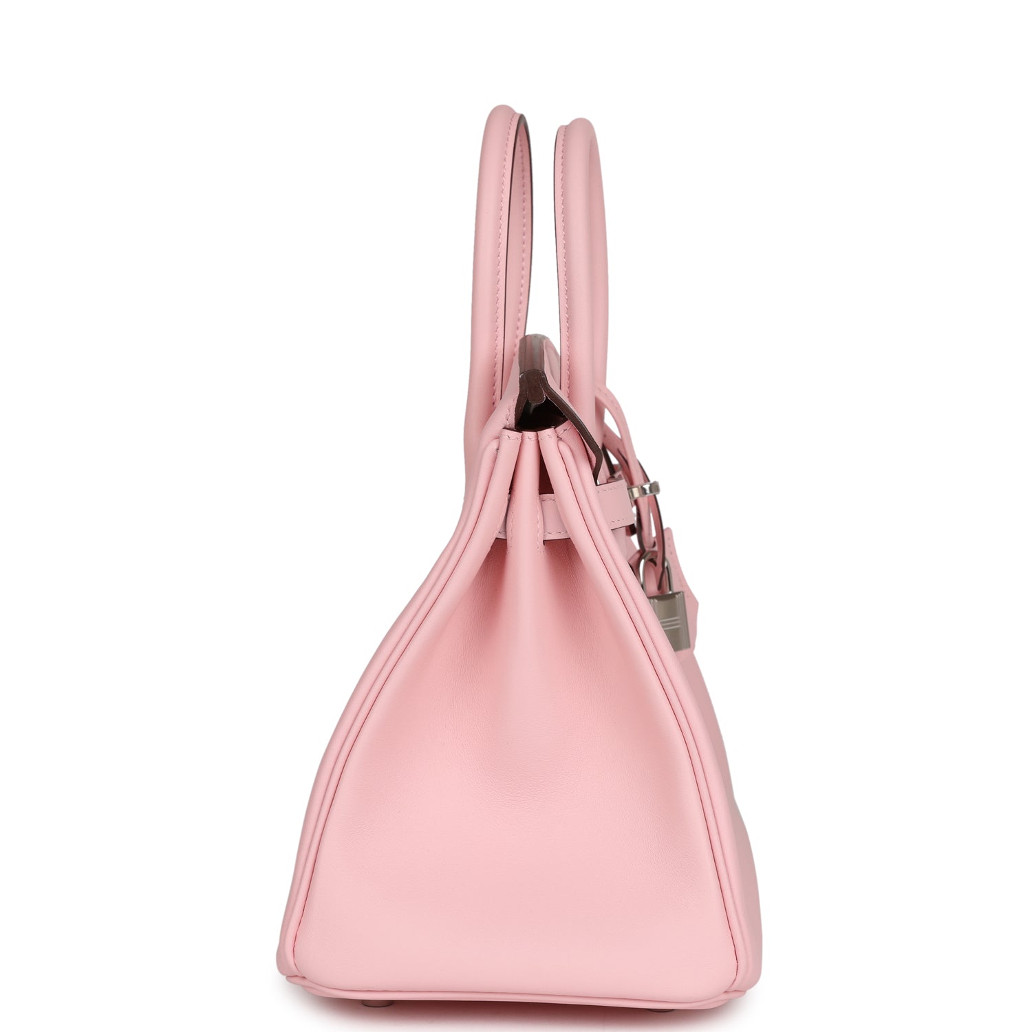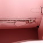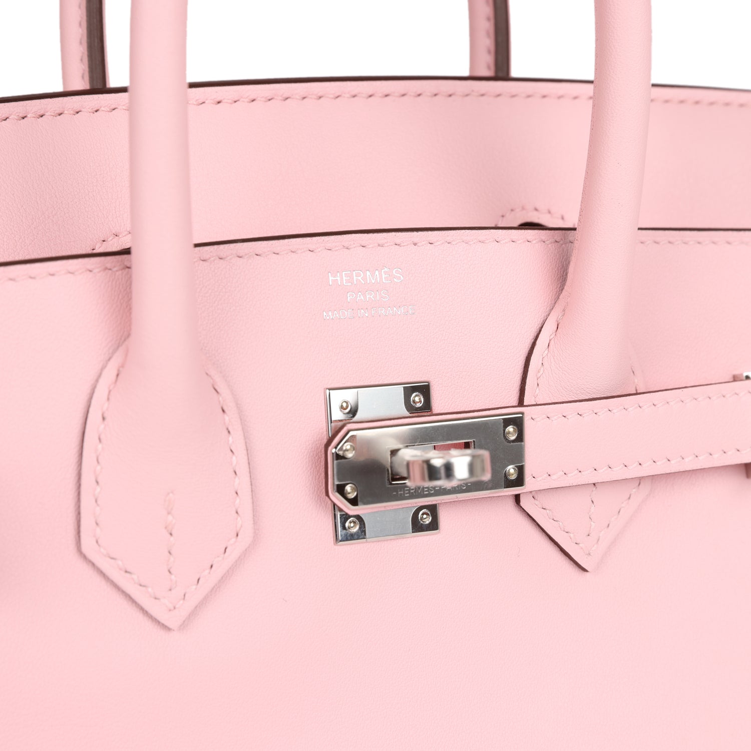 This Birkin is in Rose Sakura swiftleather with palladium hardware and features tonal stitching, front flap, two straps withcenter toggle closure, clochette with lock and two keys, and double rolled handles.