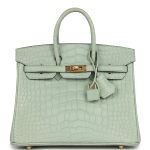 Hermes Birkin 25 Vert Cypress Shiny Niloticus Crocodile Gold Hardware