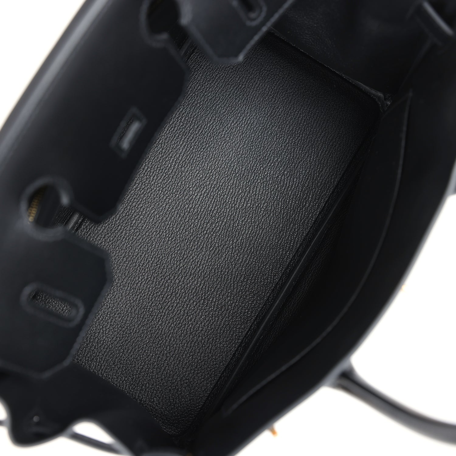 The interior is lined with Black chevre and has one zip pocket with an Hermès engraved zipper pull and an open pocket on the opposite side.