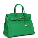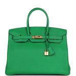 This Birkin is in Bambou clemence leather with gold hardware and has tonal stitching,front flap, two straps withcentertoggle closure, clochette with lock and two keys, and double rolled handles.