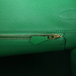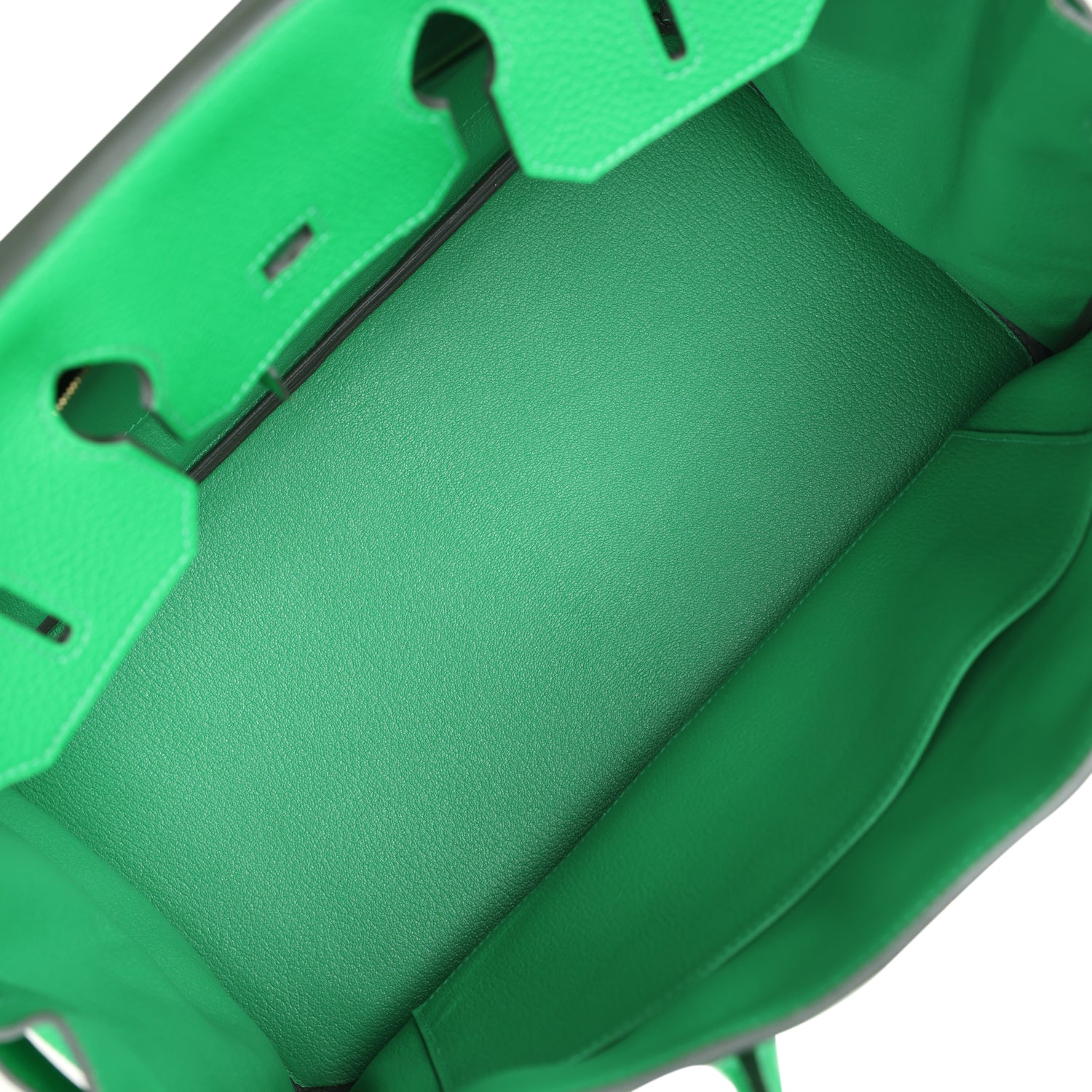 The interior is lined with Bambou chevre and has one zip pocket with an Hermès engraved zipper pull and an open pocket on the opposite side.
