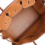 The interior is lined with gold chevre and has one zip pocket with an Hermès engraved zipper pull and an open pocket on the opposite side.