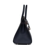 This Casaque Birkin is in Rouge Sellier and Bleu Indigo epsom leather with palladium hardware, tonal/contrast stitching, front flap with two straps, front toggle closure, clochette with lock and two keys, and double rolled handles.