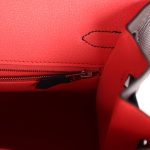 The interior is lined with Rose Mexico chevre and has one zip pocket with an Hermès engraved zipper pull and an open pocket on the opposite side.