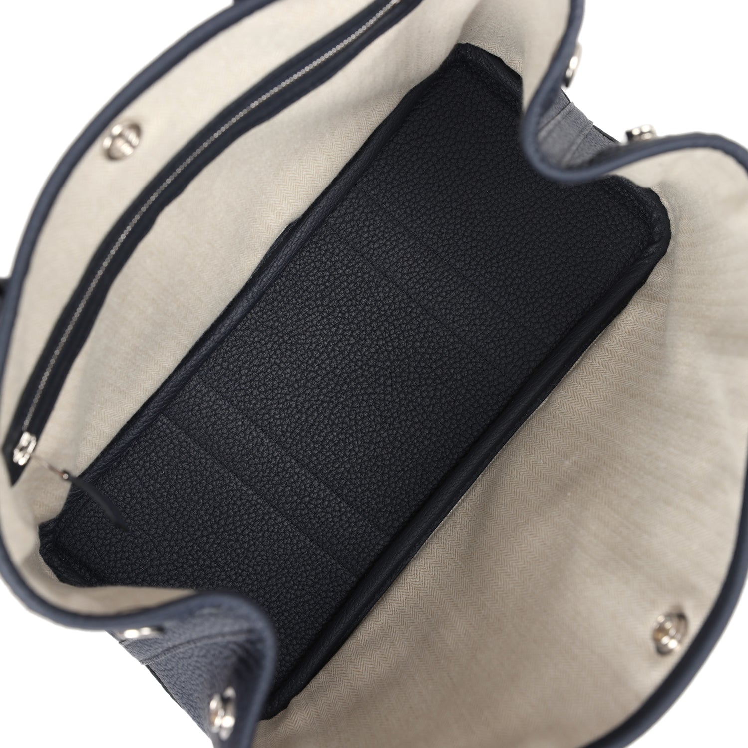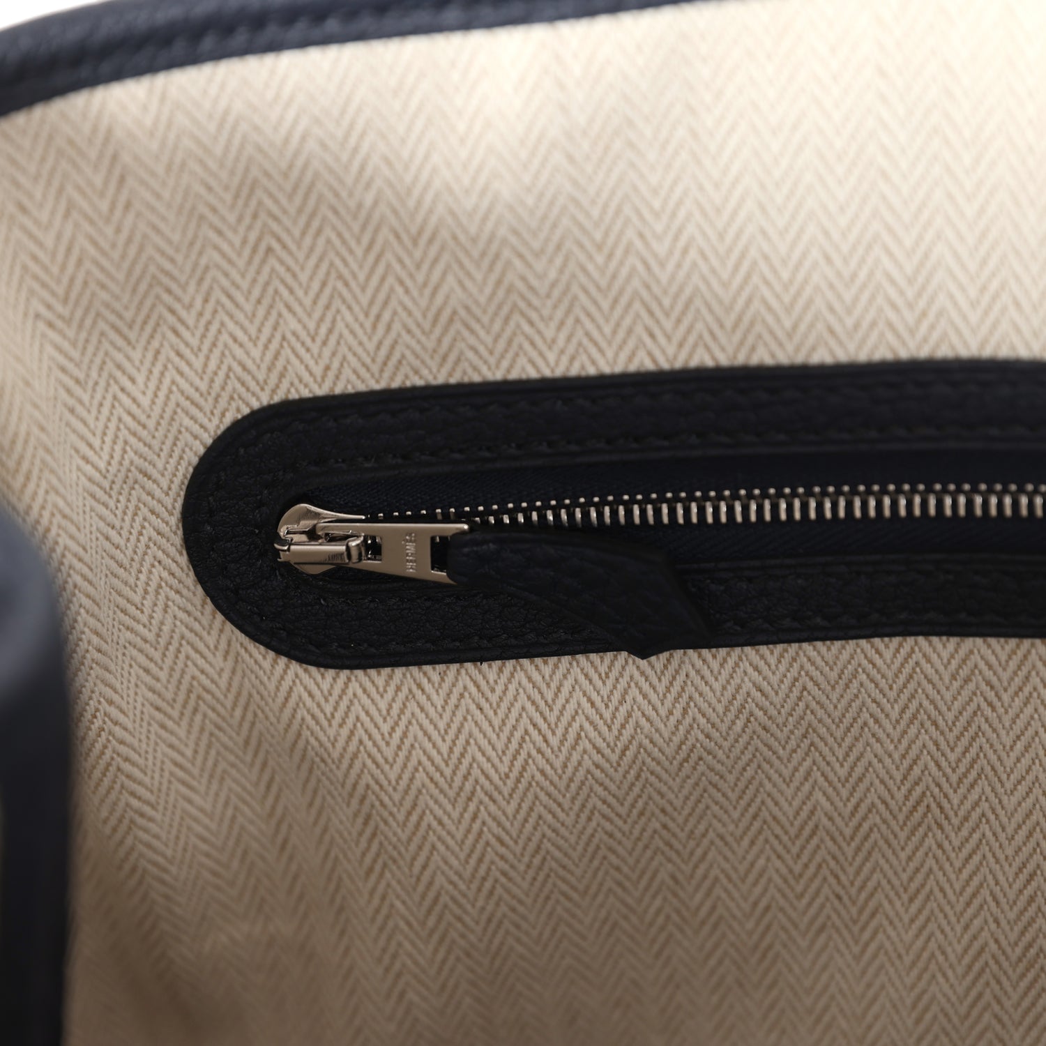 The interior is lined with herringbone toile and Bleu Nuit leather.