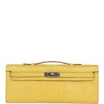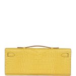 This Kelly Cut is in Mimosa matte alligator Mississppiensis with palladium hardware and has tonal stitching, two straps with front toggle closure and a top flat handle.