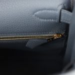 The interior is lined in Gris Misty chevre and has one zip pocket with Hermès engraved pull and two open pockets on the opposite side.