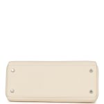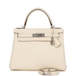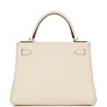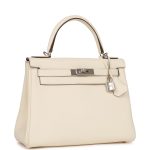 This Kelly, in the Retournestyle, is inNata clemence leather withpalladium hardware and has tonalstitching,front flap, two straps with center toggle closure, clochette with lock and two keys, single rolled handle and removable shoulder strap.